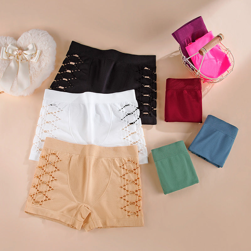 Hollow Sexy Seamless Panties Women Fitness Ladies Mid Waist Boxer Briefs Comfortable Breathable Shorts