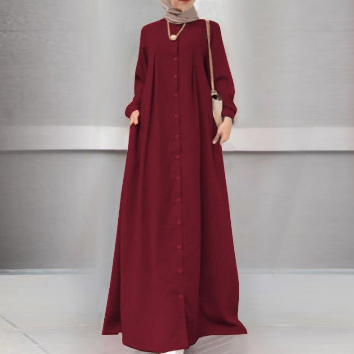 Loose Temperament Commuter Home Cardigan Long Solid Color Cotton Linen Dress